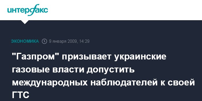 "Газпром" призывает украинские газовые власти допустить международных наблюдателей к своей ГТС