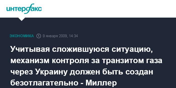 Москва. 9 января. INTERFAX.RU - Председатель правления ОАО "Газпром" Алексей Миллер полагает, что механизм независимого контроля за транзитом российского газа в Европу через Украину будет создан в ближайшие часы.