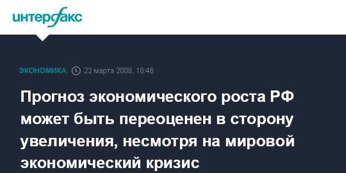 Прогноз экономического роста РФ может быть переоценен в сторону увеличения, несмотря на мировой экономический кризис