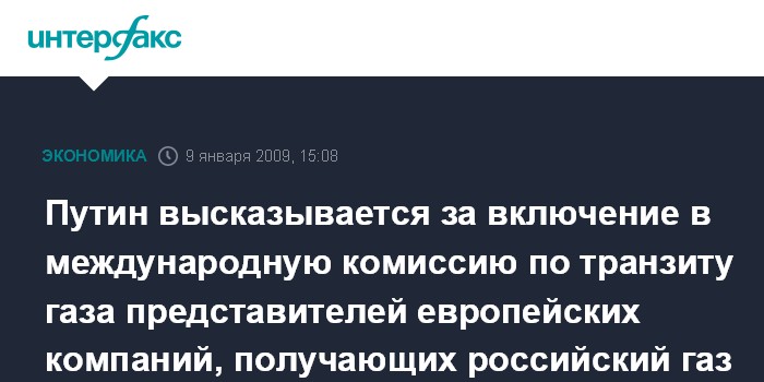 Путин высказывается за включение в международную комиссию по транзиту газа представителей европейских компаний, получающих российский газ