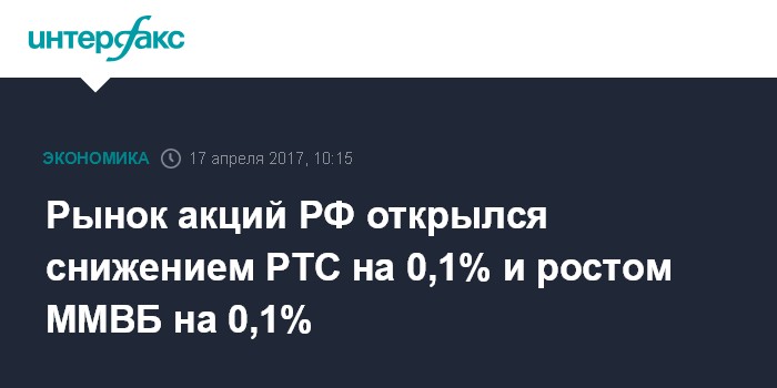 Рынок акций РФ открылся снижением РТС на 0,1% и ростом ММВБ на 0,1%