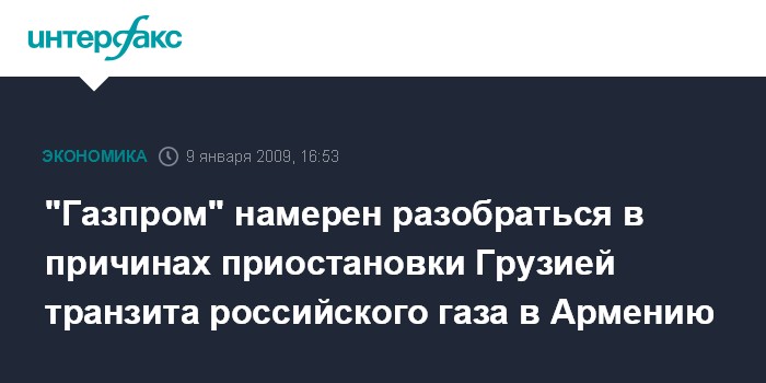 "Газпром" намерен разобраться в причинах приостановки Грузией транзита российского газа в Армению