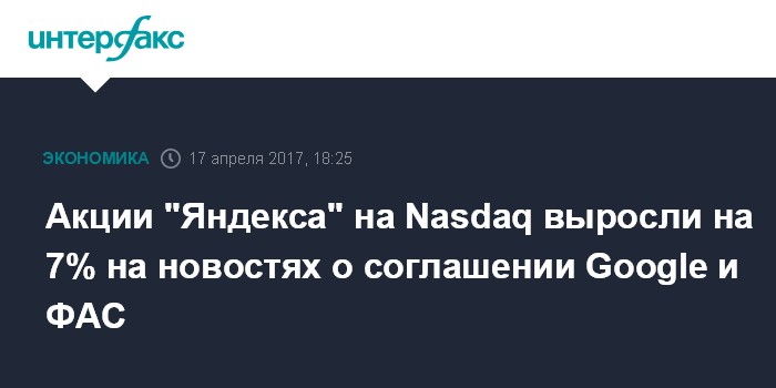Акции "Яндекса" на Nasdaq выросли на 7% на новостях о соглашении Google и ФАС