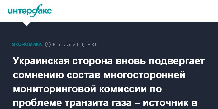 Украинская сторона вновь подвергает сомнению состав многосторонней мониторинговой комиссии по проблеме транзита газа – источник в правительстве РФ
