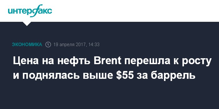 Цена на нефть Brent перешла к росту и поднялась выше $55 за баррель