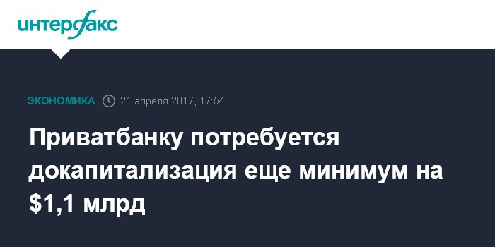 Приватбанку потребуется докапитализация еще минимум на $1,1 млрд