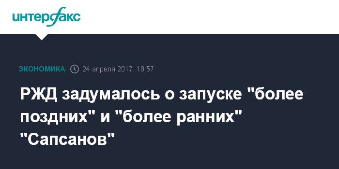 "Мы обсуждаем возможность более позднего и более раннего отправления "Сапсанов". Мы не исключаем, что поезда начнут прибывать за "нулями", и ожидаем, что это будет востребовано у пассажиров не менее, чем востребовано прибытие самолетов в аэропорты (назначения - ИФ) после "нулей", - заявил "Интерфаксу" глава департамента по управлению бизнес-блоком "Пассажирские перевозки" РЖД Максим Шнейдер.
