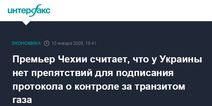 Москва. 10 января. INTERFAX.RU - Премьер-министр Чехии Мирек Тополанек заявил, что не видит препятствий для подписания протокола о контроле за транзитом газа украинской стороной.