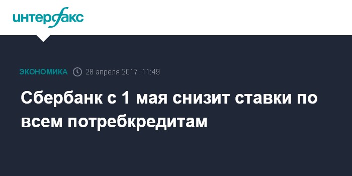 Сбербанк с 1 мая снизит ставки по всем потребкредитам