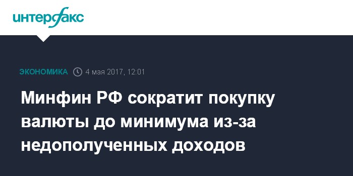 Москва. 4 мая. INTERFAX.RU - Объемы покупки валюты Минфином на рынке в мае - начале июня сократятся до абсолютного минимума из-за недополученных в апреле нефтегазовых доходов.