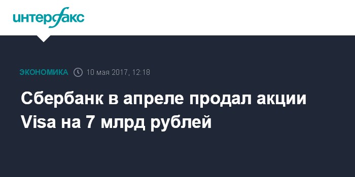 Сбербанк в апреле продал акции Visa на 7 млрд рублей
