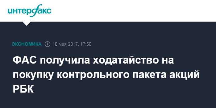 ФАС получила ходатайство на покупку контрольного пакета акций РБК