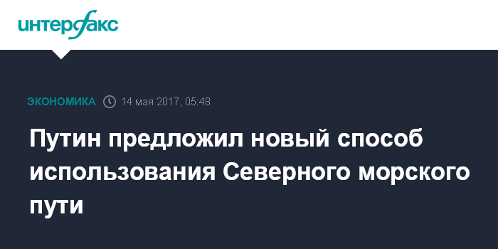 "Мы значительные ресурсы вкладываем в развитие Северного морского пути, чтобы он стал глобально конкурентной транспортной артерией", - сказал В.Путин, выступая в Пекине на открытии международного форума "Один пояс - один путь".