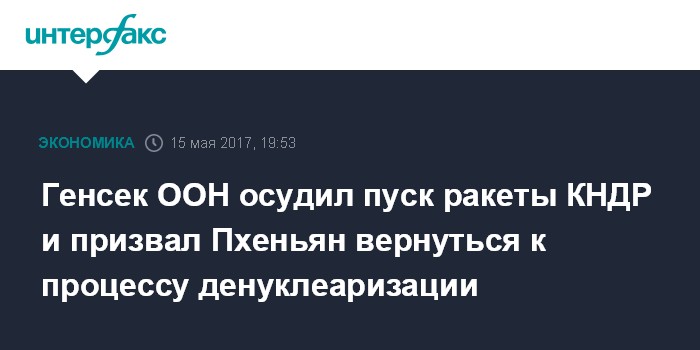 Москва. 15 мая. INTERFAX.RU - Генеральный секретарь ООН Антониу Гутерриш осудил недавний запуск баллистической ракеты КНДР, призвал Пхеньян выполнить свои международные обязательства и вернуться к денуклеаризации.