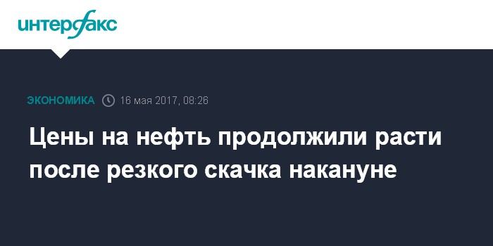 Москва. 16 мая. INTERFAX.RU - Цены на нефть растут во вторник после значительного подъема по итогам предыдущей сессии на ожиданиях продления срока действия соглашения об ограничении добычи нефти.