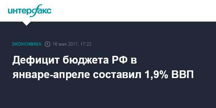 Дефицит бюджета РФ в январе-апреле составил 1,9% ВВП