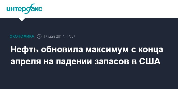 Москва. 17 мая. INTERFAX.RU - Цены на нефть подскочили до максимального уровня с конца апреля на данных о снижении запасов топлива в США по итогам прошлой недели.
