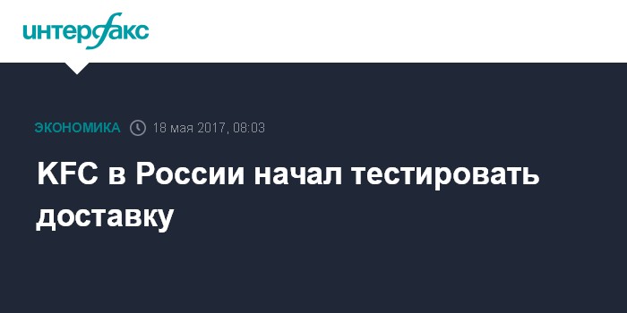 Москва. 18 мая. INTERFAX.RU - Сеть ресторанов быстрого питания KFC начала тестировать сервис доставки еды, сообщают "Ведомости". Заказ можно сделать по телефону или через мобильное приложение сети. В тестовом проекте участвуют 27 ресторанов в Москве и Московской области, а также в 10 городах на Урале, рассказал газете Илья Политковский, директор по внешним коммуникациям YUM! Brands Russia (кроме KFC развивает проекты Pizza Hut и Taco Bell).