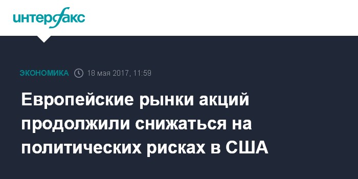 Москва. 18 мая. INTERFAX.RU - Фондовые индексы стран Западной Европы опускаются в четверг после рекордного за 9 месяцев падения в среду на возросших политических рисках в США. Сводный индекс крупнейших предприятий региона Stoxx Europe 600 к 11:00 МСК понизился на 0,49%, составив 389,21 пункта.