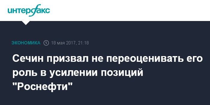 Москва. 18 мая. INTERFAX.RU - Игорь Сечин, в 2004-2011 годах занимавший пост председателя совета директоров "Роснефти", а с 2012 года возглавляющий саму компанию, призвал не переоценивать его роль в росте НК, чья добыча с начала нулевых увеличилась в десятки раз.