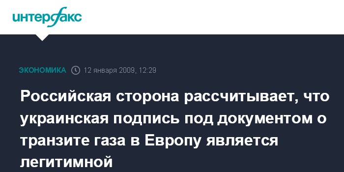 Российская сторона рассчитывает, что украинская подпись под документом о транзите газа в Европу является легитимной