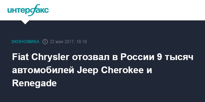 Fiat Chrysler отозвал в России 9 тысяч автомобилей Jeep Cherokee и Renegade