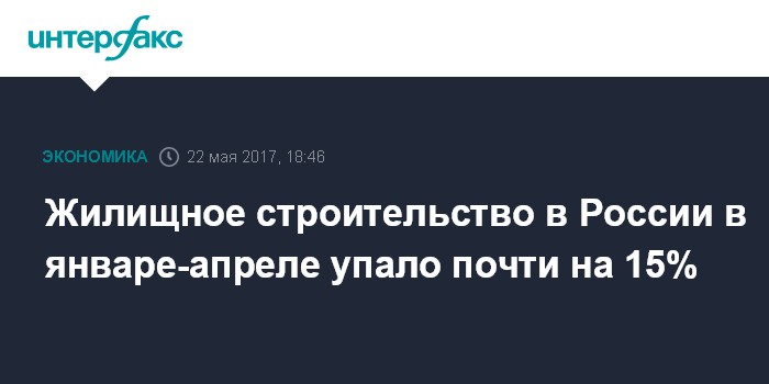 Как сообщалось, в марте падение жилищного строительства составляло 9%, в феврале -17%, в январе - 21,6%.