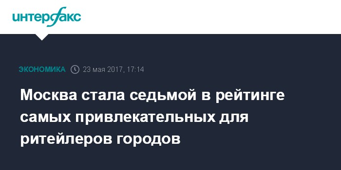 Москва стала седьмой в рейтинге самых привлекательных для ритейлеров городов