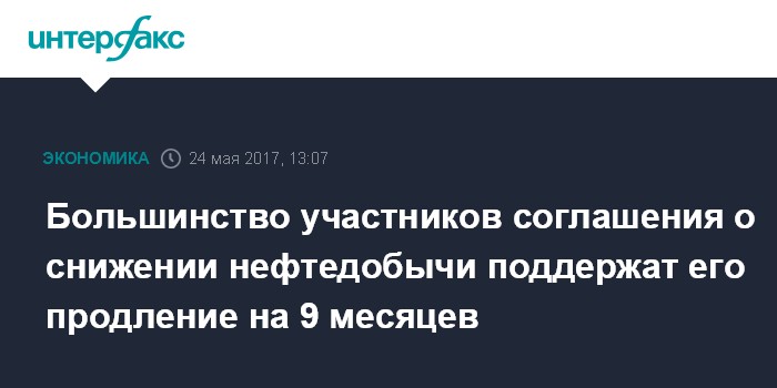 Большинство участников соглашения о снижении нефтедобычи поддержат его продление на 9 месяцев