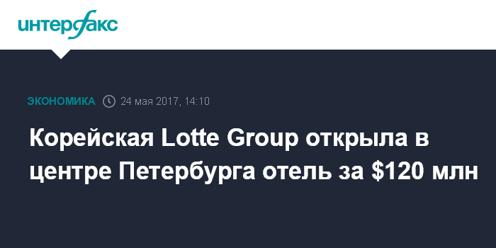 Москва. 24 мая. INTERFAX.RU - Южнокорейская компания Lotte Group открыла пятизвездочный отель в центре Петербурга, передал корреспондент "Интерфакса" с церемонии открытия. Отель начнет работать для посетителей 31 мая.
