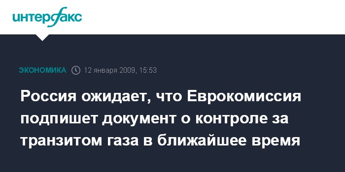 Москва. 12 января. INTERFAX.RU - Российская сторона ожидает, что Еврокомиссия подпишет документ о контроле за транзитом газа в ближайшее время, заявил по прилете в Брюссель заявил вице-премьер правительства РФ Игорь Сечин.