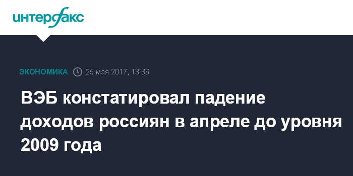 Москва. 25 мая. INTERFAX.RU - Несмотря на общий экономический рост в России в начале текущего года, реальные доходы населения продолжают снижаться и в апреле достигли уровней 2009 года, говорится в ежемесячном обзоре ВЭБа.