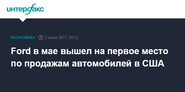 Ford Motor Co. в мае обошла General Motors Co. (GM) и впервые с марта 2016 года стала крупнейшим автоконцерном США по объему продаж благодаря поставкам в автопарки компаний и организаций: для Ford они составили 82,8 тыс. машин, для GM - чуть менее 46 тыс.