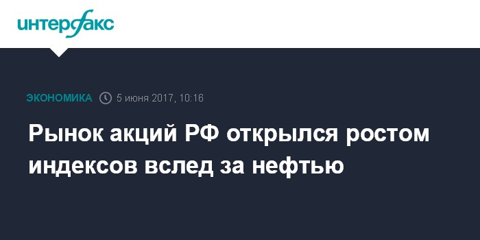Москва. 5 июня. INTERFAX.RU - Рынок акций РФ открылся в понедельник дальнейшим коррекционным ростом цен blue chips на фоне отскока нефти Brent выше $50 за баррель из-за напряженности на Ближнем Востоке; индексы ММВБ и РТС за минуту торгов прибавили 0,3-0,4%.