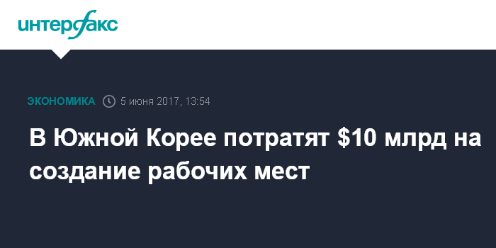 В Южной Корее потратят $10 млрд на создание рабочих мест
