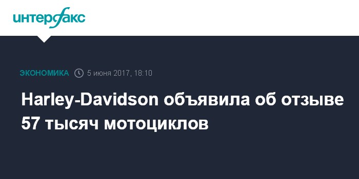 Москва. 5 июня. INTERFAX.RU - Американская компания Harley-Davidson добровольно отзывает около 57 тысяч мотоциклов. Причиной этого является возможность выхода из строя маслопровода, что может привести к попаданию масла на заднюю шину мотоцикла, сообщает Milwaukee Journal Sentinel.
