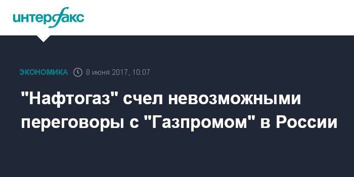 Москва. 8 июня. INTERFAX.RU - Российская Федерация является неприемлемой страной для проведения переговоров с ПАО "Газпром", заявляет НАК "Нафтогаз Украины".