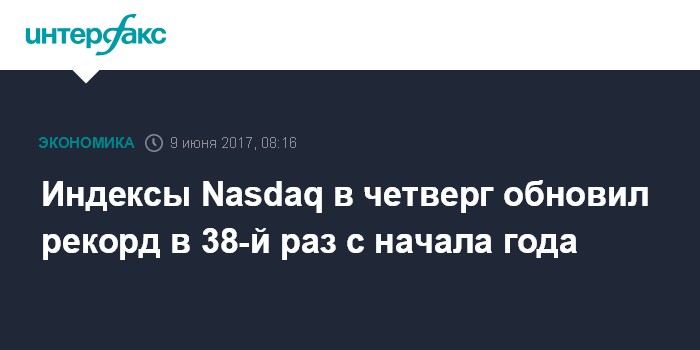 Индексы Nasdaq в четверг обновил рекорд в 38-й раз с начала года