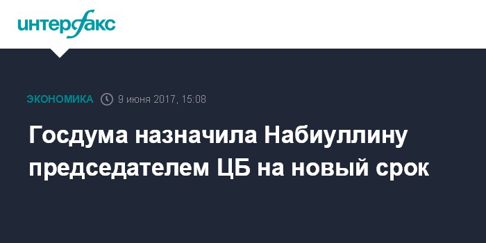 Москва. 9 июня. INTERFAX.RU - Госдума на заседании в пятницу назначила Эльвиру Набиуллину на должность председателя Банка России, новый срок ее полномочий начнется 24 июня.
