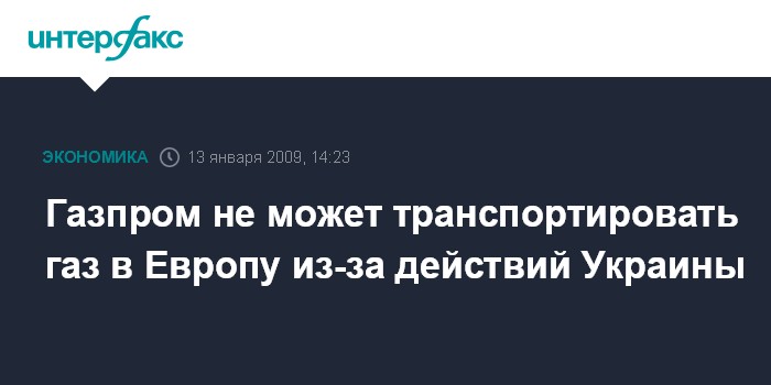 Москва. 13 января. INTERFAX.RU - "Газпром" по-прежнему не может транспортировать газ в Европу из-за действий Украины, сообщил журналистам заместитель председателя правления "Газпрома" Александр Медведев.