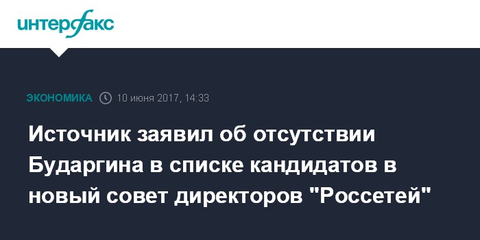Источник заявил об отсутствии Бударгина в списке кандидатов в новый совет директоров "Россетей"