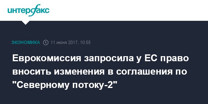 Москва. 11 июня. INTERFAX.RU - Еврокомиссия запросила у Евросоюза право вносить изменения в соглашения по "Северному потоку-2" в рамках мандата на ведение переговоров, заявил в воскресенье на пресс-конференции еврокомиссар по энергетике Марош Шефчович.