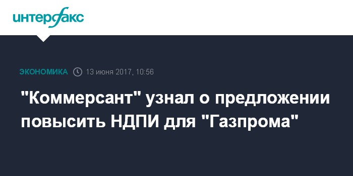 Москва. 13 июня. INTERFAX.RU - Минфин РФ предлагает повысить ставку НДПИ на газ для "Газпрома" в четвертом квартале, сообщил "Коммерсантъ" со ссылкой на источники.