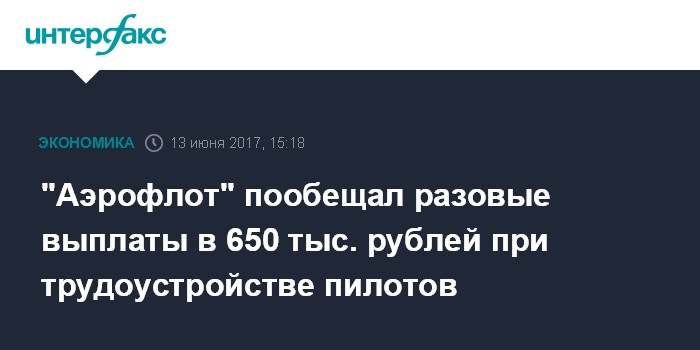 Так, 650 тыс. руб. компания будет выплачивать командирам воздушного судна, 350 тыс. руб. - вторым пилотам.