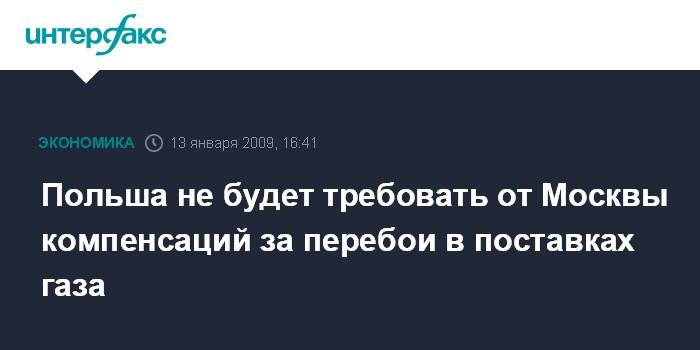 Польша не будет требовать от Москвы компенсаций за перебои в поставках газа