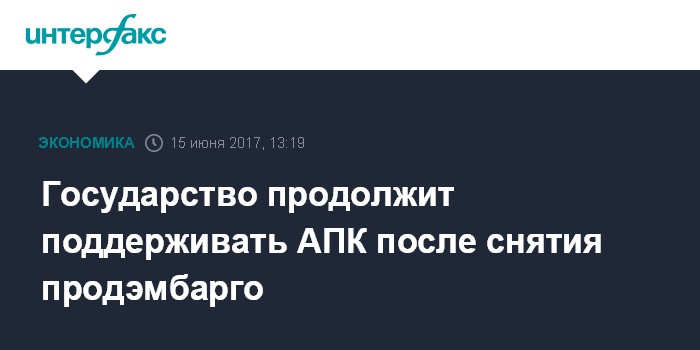 Государство продолжит поддерживать АПК после снятия продэмбарго