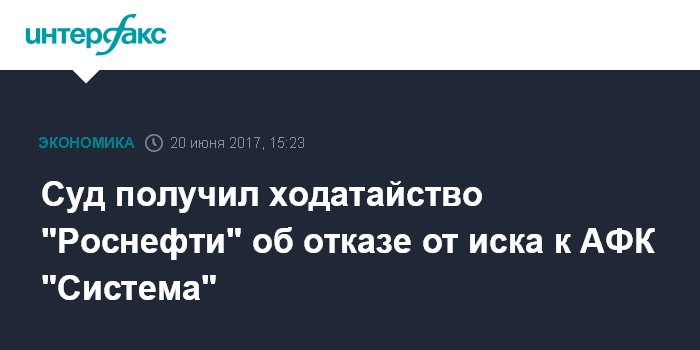 Суд получил ходатайство "Роснефти" об отказе от иска к АФК "Система"