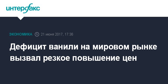 Москва. 21 июня. INTERFAX.RU - Дефицит предложения стручков ванили вызвал резкий скачок цен на данный продукт, сообщает издание RTT News. Цена на ваниль, один из основных ингредиентов, используемых в пищевой промышленности, значительно возросла за последние несколько лет и составляет более $200 за фунт по сравнению с $11 за фунт в 2011 году.