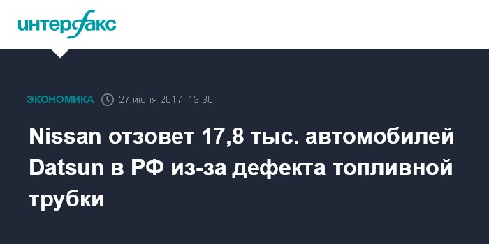 Nissan отзовет 17,8 тыс. автомобилей Datsun в РФ из-за дефекта топливной трубки