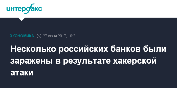 Москва. 27 июня. INTERFAX.RU - ЦБ РФ известно о выявленных случаях заражения российских банков в результате компьютерной атаки, сообщили "Интерфаксу" в пресс-службе ЦБ.